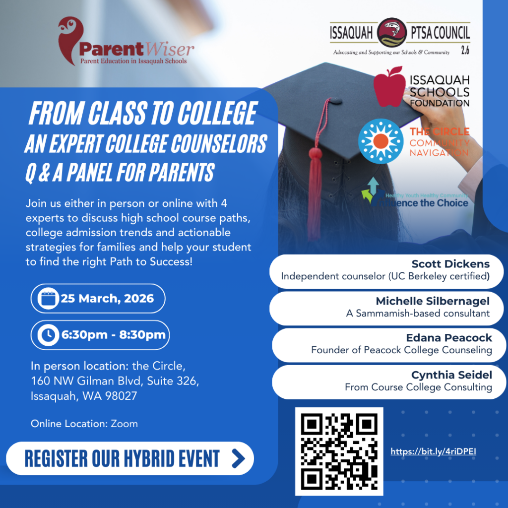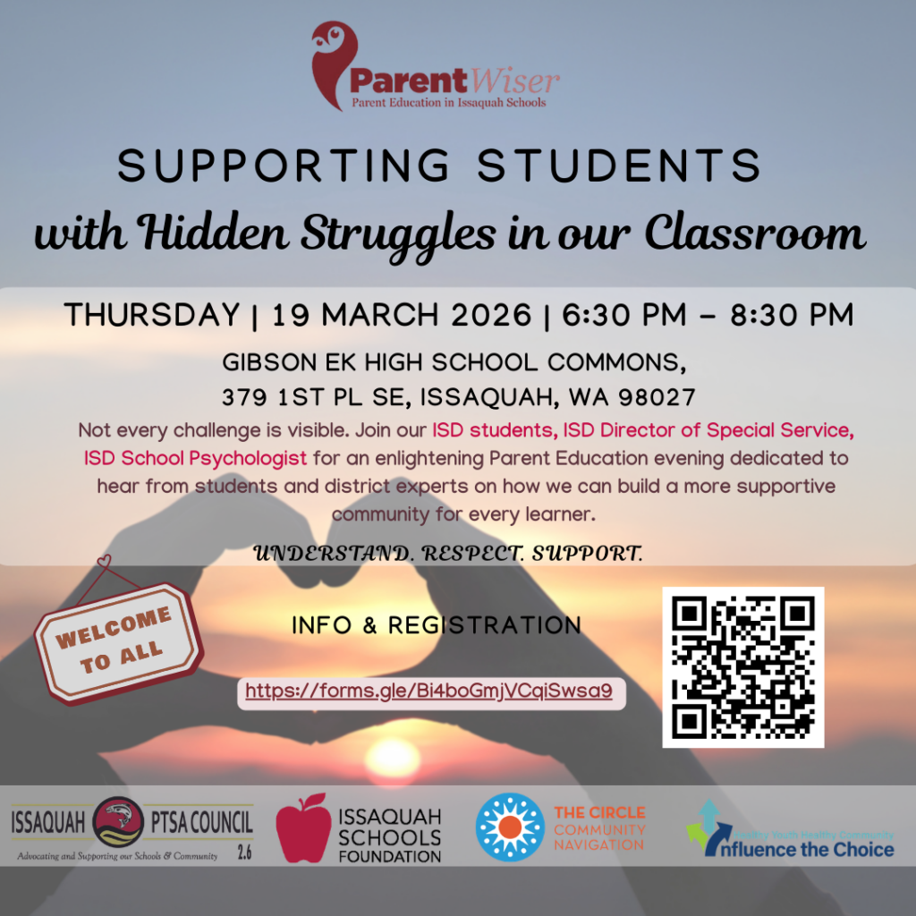 The Issaquah PTSA Council ParentWiser Program invites ALL Issaquah School District families to join us for an essential evening dedicated to understanding the quiet challenges many of our students face every day.